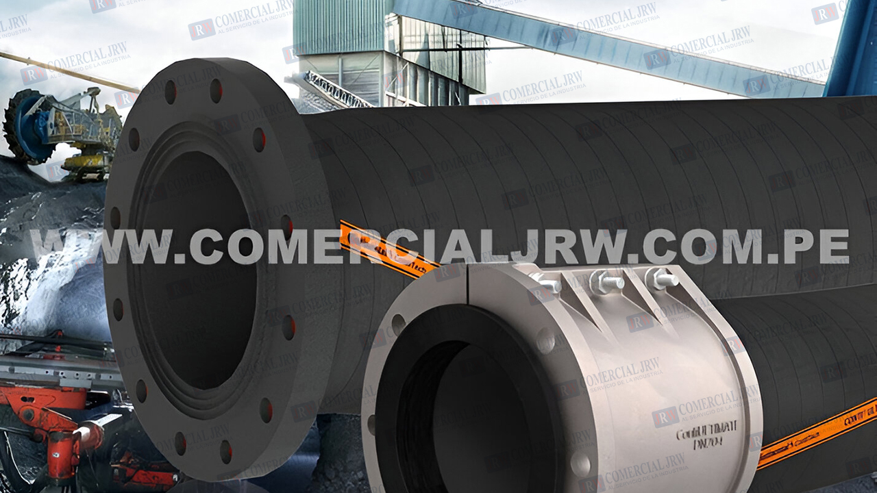 Manguera de caucho natural y sintético muy resistente a la abrasión. Reforzada con lonas de poliester y espiral de acero galvanizado para servicios de presión y aspiración. Indicada para la succión y descarga de elementos abrasivos.